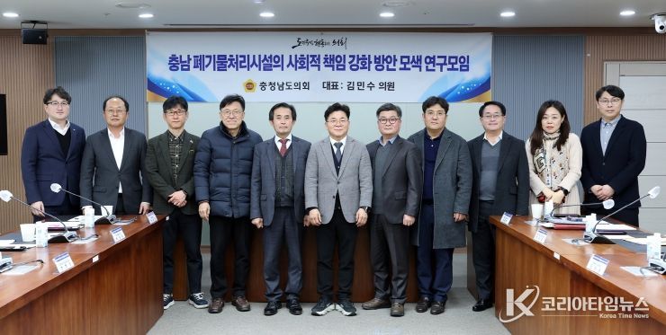 코리아타임뉴스 김택호 기자 | 충남도의회 ‘충남 폐기물처리시설의 사회적 책임 강화 방안 모색 연구모임’(대표 김민수)은 22일 보건복지환경위원회 회의실에서 회의를 열고, 폐기물처리시설의 책임 강화를 위한 종합 정책 방안을 논의하며 연구 활동을 마무리했다.