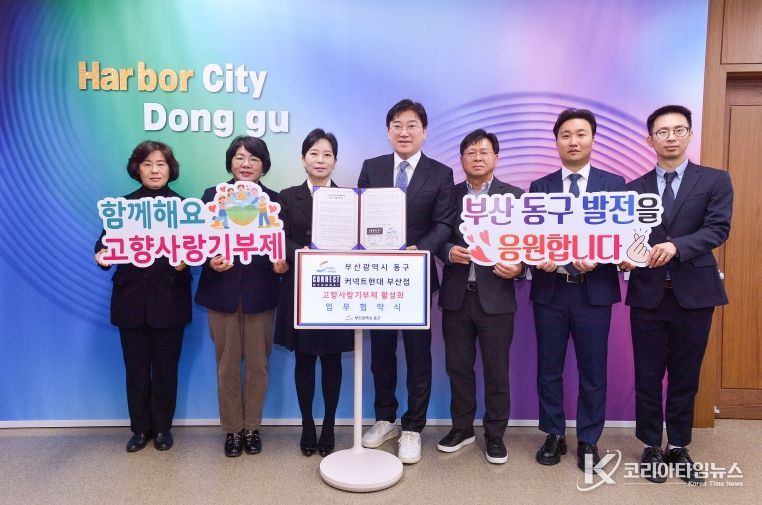 코리아타임뉴스 부산취재본부 | 부산 동구는 지난 18일 커넥트현대 부산점(점장 천동욱)과 고향사랑기부제 활성화를 위한 업무협약을 체결했다고 밝혔다.