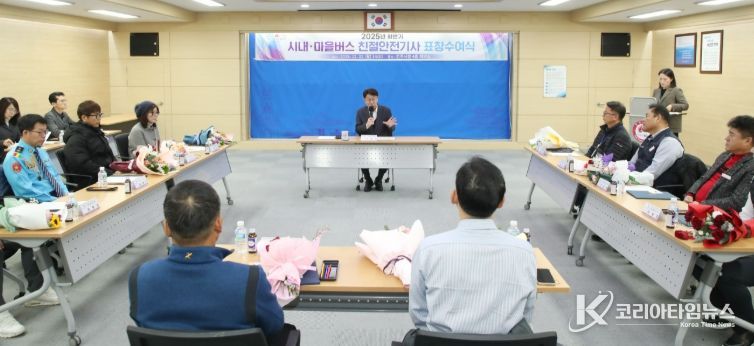 시는 22일 시청 4층 회의실에서 ‘2025년 하반기 시내·마을버스 친절안전기사 표창수여식’을 개최하고, 김은희 씨(전일여객) 등 10명의 버스운전원에게 시장 표창을 전달했다.