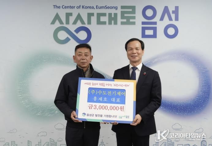 코리아타임뉴스 충북취재본부 | ㈜수도전기제어 홍재호 대표가 지난 22일 음성군에 고향사랑기부금 300만 원을 전달했다.