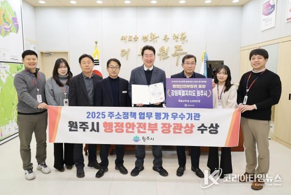코리아타임뉴스 이아름 기자 | 원주시는 최근 행정안전부가 주관한 ‘2025 주소정책 성과 공유 워크숍’에서 주소정책 업무 평가 우수 기관으로 선정돼, 행정안전부장관 표창을 수상하고 특별교부세 4천만 원을 확보했다.