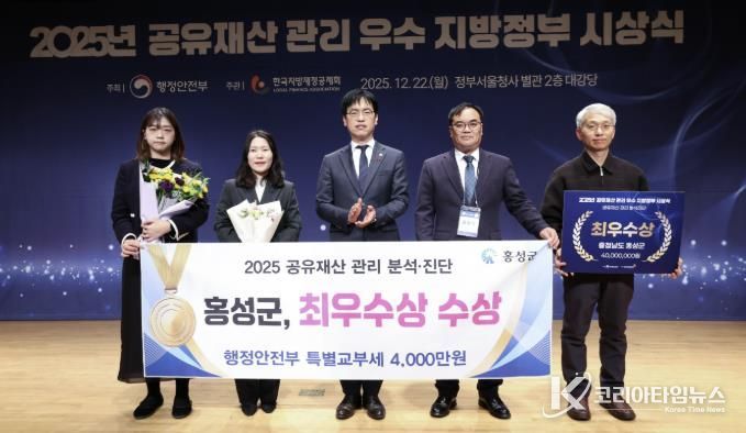 코리아타임뉴스 충남취재본부 | 홍성군은 행정안전부가 실시한 ‘2025년 공유재산 관리·분석 진단 평가’에서 최우수 자치단체에 선정되며 특별교부세 4천만원의 인센티브를 지원받게 됐다.