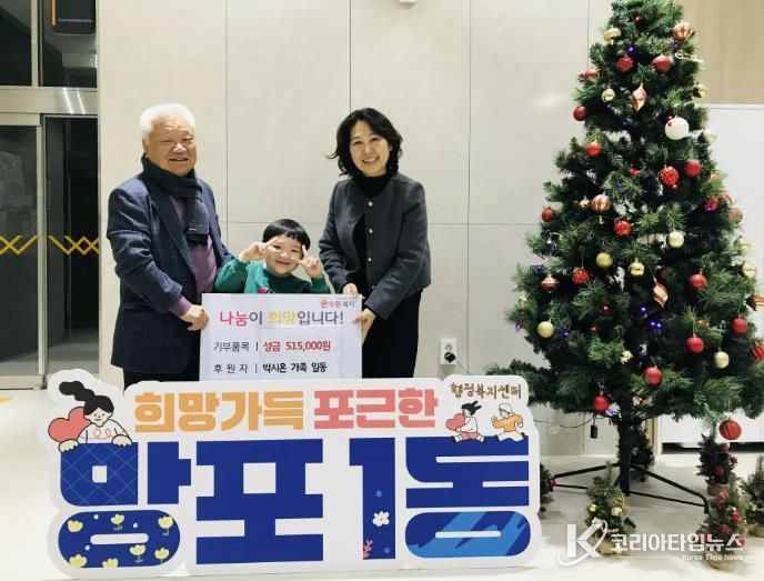 코리아타임뉴스 사회팀 | 수원시 영통구 망포1동은 지난 22일, 망포1동에 거주하는 박시온네 가족이 어려운 이웃에게 전해달라며 성금 515,000원을 기탁했다고 밝혔다.
