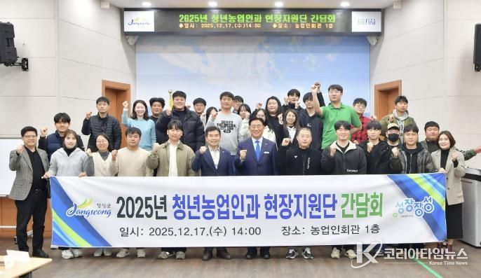 코리아타임뉴스 노승선 기자 | 장성군이 최근 농업기술센터 농업인회관에서 ‘청년농업인과 현장지원단 간담회’를 열었다.