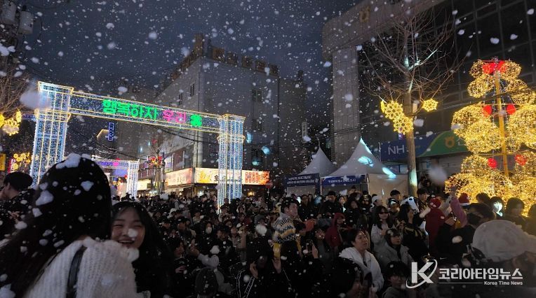 코리아타임뉴스 오영주 기자 | 거제시 고현 빛의 거리에서 열린 ‘고현 리본(Re-born), 첫눈 페스티벌’이 많은 시민과 관광객의 참여 속 성황리에 개최되며, 겨울철 도심 상권 활성화 가능성을 확인했다.