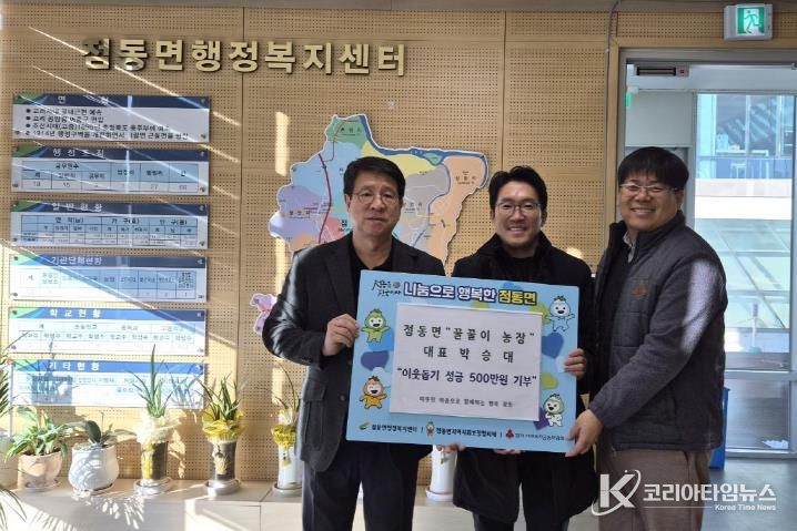 코리아타임뉴스 기동취재팀 | 점동면 관내 꿀꿀이 농장 박승대 대표가 지난 12월 22일, 연말을 맞아 이웃사랑 성금 500만원을 경기사회복지공동모금회를 통해 점동면 지정기탁으로 점동면행정복지센터에 전달하며 지역사회에 따뜻한 감동을 전했다.