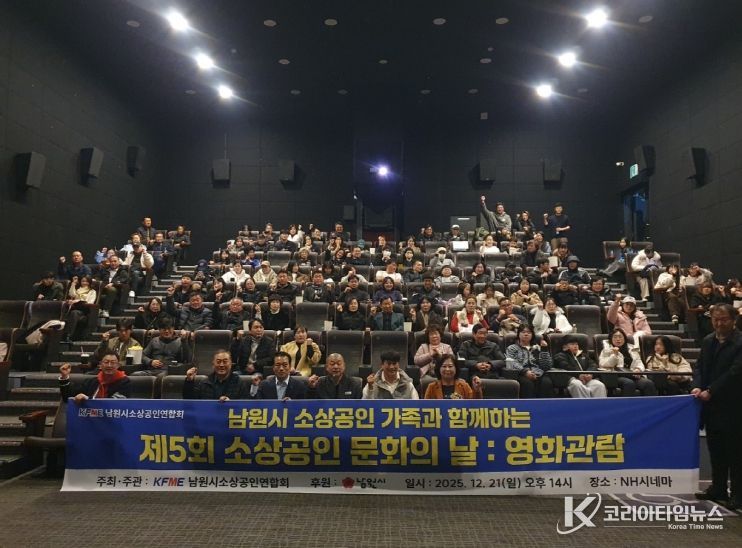 코리아타임뉴스 김태훈 기자 | 남원시소상공인연합회(회장 강상남)는 지난 21일 NH시네마에서 소상공인과 가족들을 초청해 영화 관람 행사를 열고 ‘소상공인 문화의 날’을 기념했다.