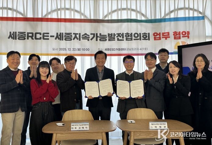 코리아타임뉴스 사회팀 | 세종특별자치시교육청은 12월 22일에 ‘세종지속가능발전교육센터’(세종RCE, 강남프라자 401호)에서 세종지속가능발전협의회(상임대표 김해식)와 ‘지속가능발전교육 활성화’를 위한 업무협약을 체결했다.