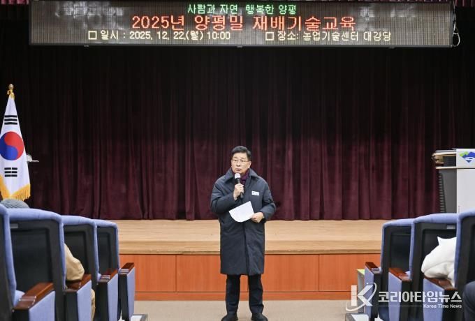 코리아타임뉴스 기동취재팀 | 고품질 양평밀 생산을 위한 2025년 양평밀 재배기술 교육이 지난 22일 오전 10시부터 12시까지 양평군농업기술센터에서 개최됐다.