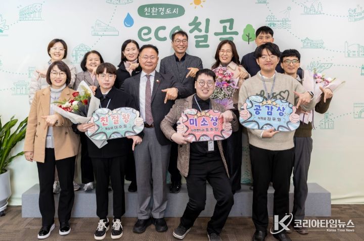 코리아타임뉴스 경북취재본부 | 칠곡군은 지난 22일 2025년 하반기 친절 민원행정 공무원으로 친절왕 이수철(북삼읍), 미소상 조주환(민원토지과), 공감상 김두형(석적읍) 주무관을 선발하여 상장을 수여했다.