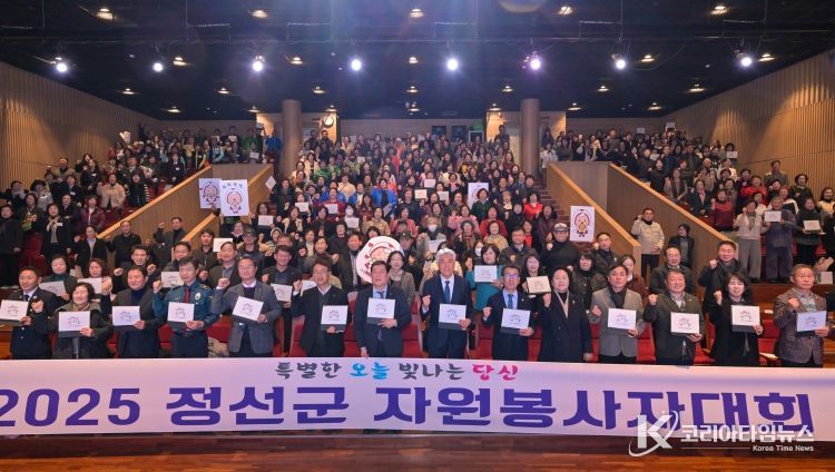 코리아타임뉴스 이아름 기자 | 정선군은 12월 23일 정선문화예술회관 3층에서 한 해 동안 지역 곳곳에서 이웃사랑을 실천해 온 자원봉사자들을 격려하고 자원봉사 문화 확산을 도모하기 위해 ‘2025 정선군자원봉사자대회’를 개최했다.