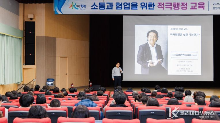 코리아타임뉴스 경남취재본부 | 합천군은 23일 합천군종합사회복지관 3층 대강당에서 전 직원을 대상으로 ‘2025년 적극행정 교육’을 오전·오후 2회차로 나누어 실시했다.