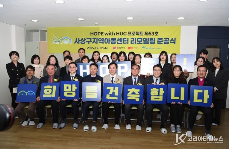 코리아타임뉴스 이아름 기자 | 부산 사상구는 지난 17일, 부산광역시·부산국제건축제조직위원회·주택도시보증공사(HUG)가 공동 주관하는 2025년 ‘HOPE with HUG’ 프로젝트에 선정된 사상구지역아동센터의 노후 시설 리모델링 공사를 완료하고 준공식을 개최했다고 밝혔다.