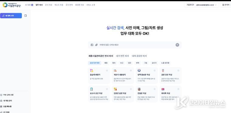 코리아타임뉴스 세종취재분부 | 세종특별자치시시설관리공단은 챗GPT, 제미나이 등 다양한 생성형 인공지능 프로그램을 하나의 환경에서 활용할 수 있는 인공지능 통합 플랫폼을 도입해 지능형 업무 환경 구축에 나선다고 밝혔다.