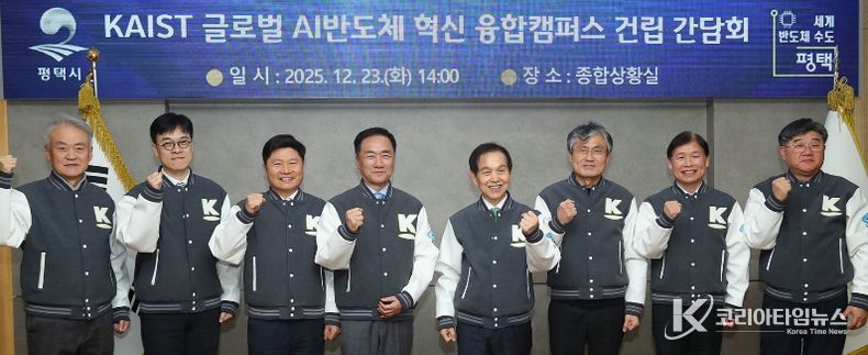 평택시는 이날 평택시청에서 카이스트 이광형 총장 등 관계자들과 함께 ‘KAIST 글로벌 AI 반도체 혁신캠퍼스 신축 실시설계 착수 간담회’를 개최하고, 캠퍼스 조성 사업의 추진 현황과 향후 협력 방향을 공유했다.