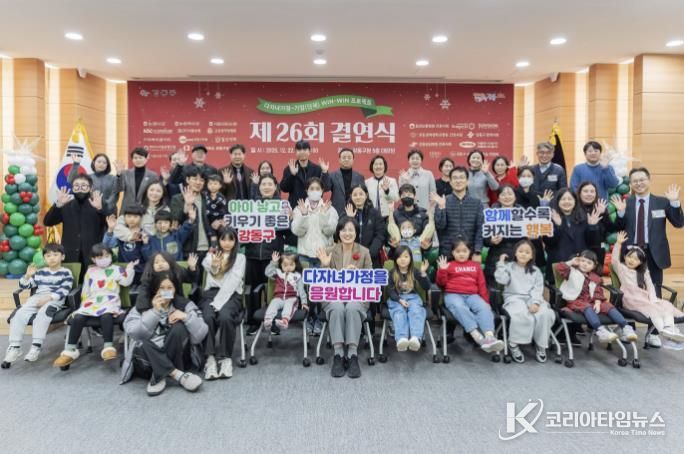 코리아타임뉴스 노승선 기자 | 서울 강동구는 지난 12월 22일, 강동구청 대강당에서 ‘다자녀 가정-기업(단체) WIN-WIN 프로젝트’ 제26회 결연식을 개최했다고 24일 밝혔다.
