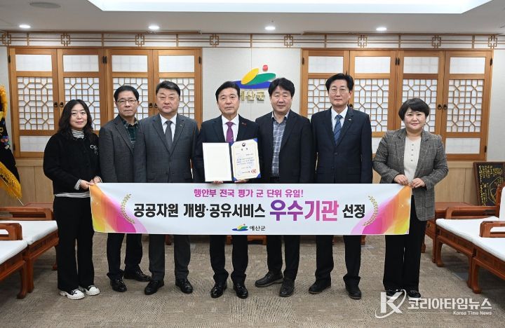 코리아타임뉴스 김택호 기자 | 예산군은 행정안전부가 주관한 ‘2025년 공공자원 개방·공유서비스 실적평가’에서 우수 지자체로 선정돼 행정안전부 장관상을 수상했다고 밝혔다.
