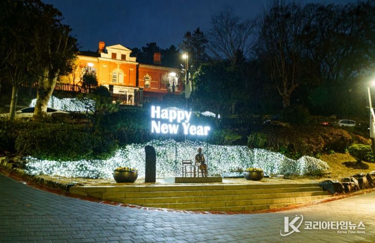 코리아타임뉴스 전남취재본부 | 목포시는 지난 23일, 연말을 맞아 근대역사관 1관 앞 평화의 소녀상 주변에 눈꽃 경관조명을 설치했다.