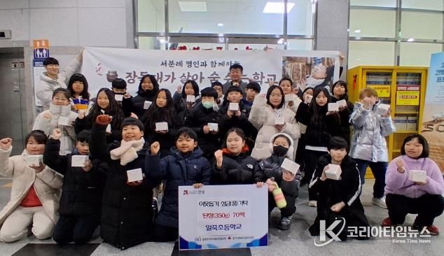 코리아타임뉴스 경기취재본부 | 일죽면행정복지센터는 일죽초등학교 3~4학년 학생들이 서일농원과 함께 진행한 전통된장 만들기 프로그램에서 직접 만든 된장(1팩 350g) 70개를 일죽면 지역사회에 기부하며 따뜻한 나눔을 실천했다고 밝혔다.