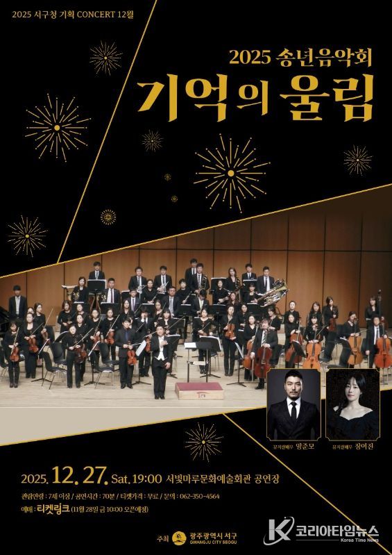 코리아타임뉴스 노승선 기자 | 광주광역시 서구는 2025년 한 해를 마무리하며 오는 27일 오후7시 서빛마루문화예술회관에서 송년음악회 ‘기억의 울림’을 개최한다.