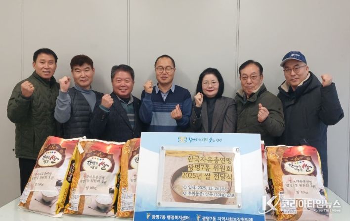 코리아타임뉴스 경기취재본부 | 한국자유총연맹 광명7동위원회는 24일 연말을 맞아 관내 저소득 취약계층 27가구에 쌀 270㎏을 전달했다.