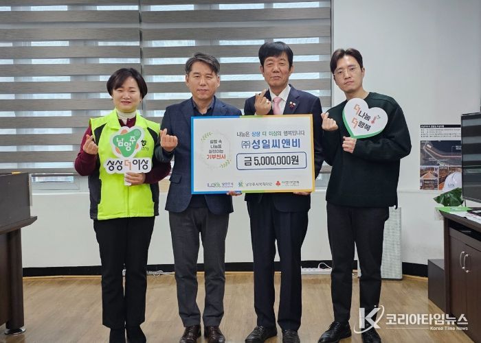 김남일 성일씨앤비 대표는 “지역사회와 함께 성장해 온 기업으로서 연말을 맞아 이웃들에게 작은 힘이라도 보태고 싶었다”며 “앞으로도 지속적인 나눔을 통해 지역사회에 기여할 수 있도록 노력하겠다”고 말했다.
