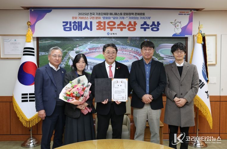 코리아타임뉴스 오영주 기자 | 김해시는 지난 23일'2025년 전국 기초단체장 매니페스토 문화정책 콘체르토 대회'에서 문화거버넌스 구현 분야‘최우수상’을 수상했다고 밝혔다.
