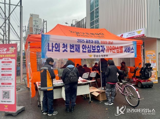 코리아타임뉴스 김태훈 기자 | 경상남도 소방본부는 24일 경상남도 소방본부와 김해동부소방서가 김해시 거북공원과 외동전통시장 일대에서 119안심콜 홍보 캠페인을 실시했다고 밝혔다.