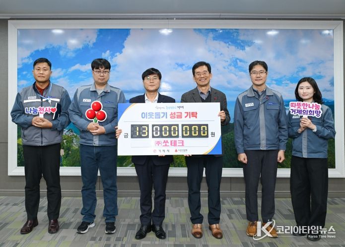 쏘테크(대표 정호현)는 직원들이 자발적으로 모은 연말 모금액 882만 원에 회사 기부금을 더해 총 1,300만 원의 성금을 마련하고, 이를 거제시에 기탁했다.