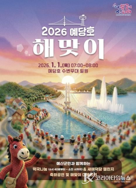 코리아타임뉴스 김택호 기자 | 예산문화원은 2026년 병오년 ‘붉은 말의 해’를 맞아 오는 1월 1일 오전 7시부터 예당호 수변무대 일원에서 ‘2026 예당호 해맞이 행사’를 개최한다.