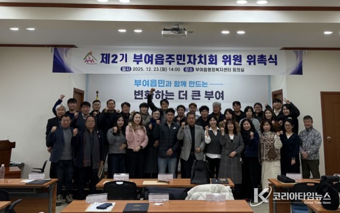 코리아타임뉴스 충남취재본부 | 부여읍은 지난 11월 공개모집을 통해 선발된 제2기 부여읍주민자치회 위원 위촉식을 부여읍 행정복지센터 2층 회의실에서 개최했다고 26일 밝혔다.