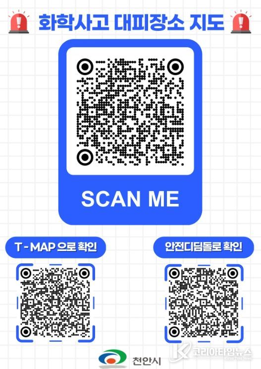 코리아타임뉴스 김택호 기자 | 천안시는 ‘화학사고 대피장소 안내지도’를 5개 국어 리플렛과 QR안내판, 포스터 등 다양한 형식으로 제작해 배포했다고 26일 밝혔다.