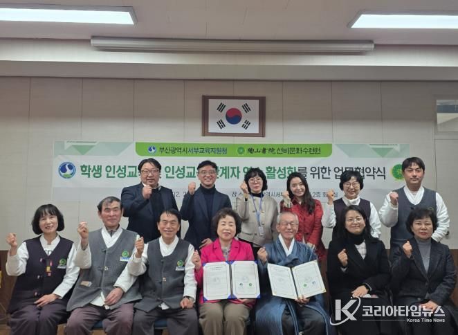 코리아타임뉴스 사회팀 | 부산광역시서부교육지원청은 지난 24일 오후 서부교육지원청에서 경북 안동시 도산서원 선비문화수련원과 ‘전통문화체험기관 연계 인성교육 프로그램’을 위한 업무협약을 체결했다고 밝혔다.