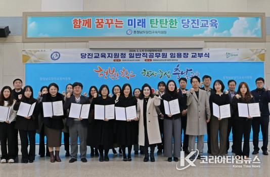 코리아타임뉴스 사회팀 | 충청남도당진교육지원청은 24일, 2026년 1월 1일 자로 당진교육지원청 소속으로 전입한 직원과 교육청 전입 직원 26명을 대상으로 일반직공무원 임용장 교부식을 개최했다고 밝혔다.