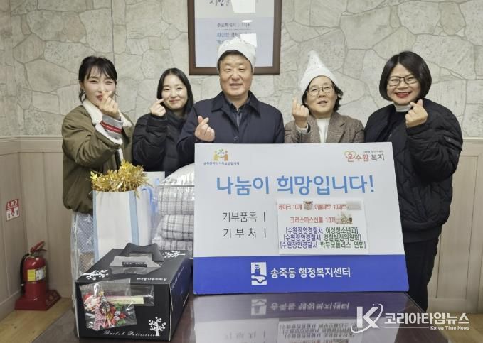 코리아타임뉴스 사회팀 | 수원시 장안구 송죽동은 지난 24일 장안경찰서로부터 연말을 맞아 지역 내 조손가정 등 취약계층을 위한 후원 물품을 기부했다고 밝혔다.