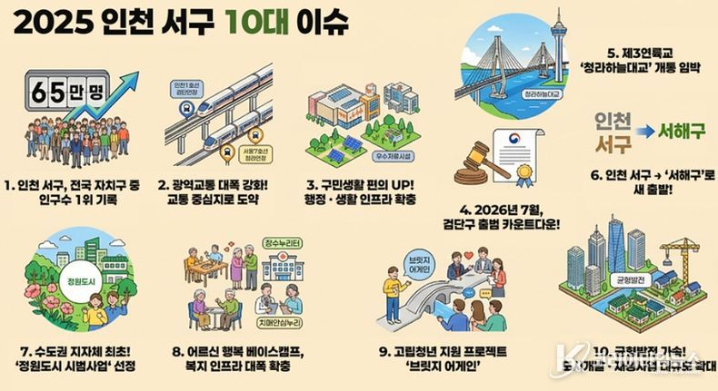 코리아타임뉴스 사회팀 | 인천광역시 서구에서는 2025년 한 해 동안 주요 관심 사항과 정책 추진 상황 등을 정리하여 2025 인천 서구 10대 이슈를 선정·발표했다.