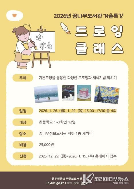 코리아타임뉴스 경기취재본부 | 동두천시 도서문화사업소 꿈나무정보도서관은 초등학생을 대상으로 한 2026년 겨울방학 특강 프로그램을 운영한다고 밝혔다.