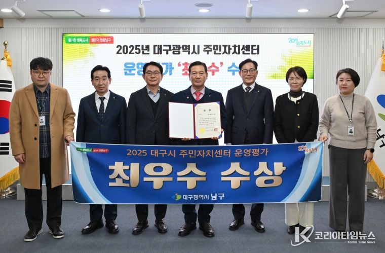 코리아타임뉴스 노승선 기자 | 대구 남구는 2025 대구시 주민자치센터 운영평가에서 9개 구·군 가운데 ‘최우수’(1위) 기관으로 선정되는 영예를 안았다.