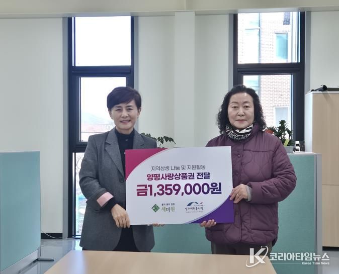 코리아타임뉴스 기동취재팀 | 재단법인 세미원은 지난 22일 최근 관람객이 기부한 양평사랑상품권 총 135만 9천 원을 양수리전통시장상인회에 기부했다고 밝혔다.