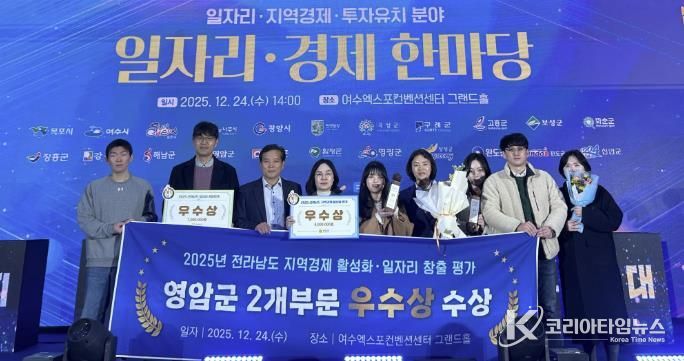 코리아타임뉴스 노승선 기자 | 영암군이 24일 여수엑스포컨벤션센터에서 열린 ‘2025년 전남 일자리·경제 한마당’에서 일자리 창출 우수상을 수상했다.