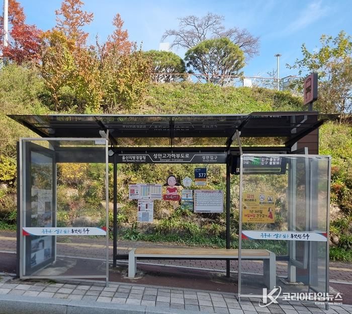 코리아타임뉴스 울산취재본부 | 울산 중구가 주민들이 겨울에도 쾌적하게 대중교통을 이용할 수 있도록 버스승강장에 바람막이와 온열 의자를 설치했다.