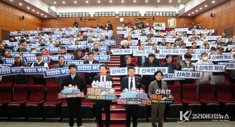 코리아타임뉴스 전북취재본부 | 부안군은 겨울철 폭설 등 자연재난에 대비해 읍‧면 제설방재단의 현장 대응 역량을 강화하기 위한 교육을 26일 부안군청 2층 대강당에서 실시했다고 밝혔다.