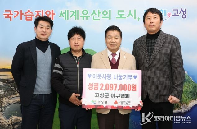 코리아타임뉴스 경남취재본부 | 고성군 야구협회(협회장 신용락)는 12월 26일, 고성군을 방문하여 어려운 이웃에게 써달라며 이웃돕기 성금 209만 7천 원을 기탁했다.