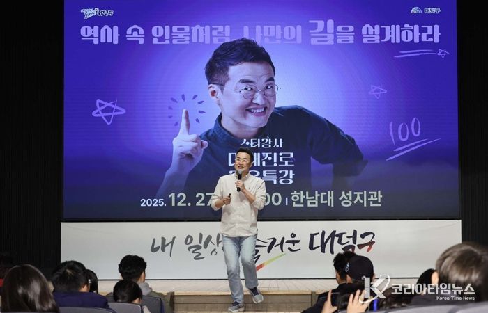 코리아타임뉴스 대전취재본부 | 대전 대덕구는 지난 27일 한남대학교 성지관에서 한국사 스타강사 최태성 씨를 초청해 ‘미래진로 교육특강’을 성황리에 마무리했다.