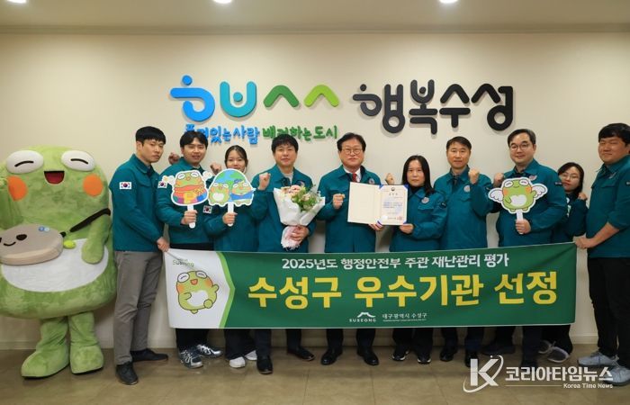 코리아타임뉴스 노승선 기자 | 대구 수성구는 행정안전부가 주관한 ‘2025년도 재난관리 평가’에서 재난관리 우수기관으로 선정됐다고 밝혔다.