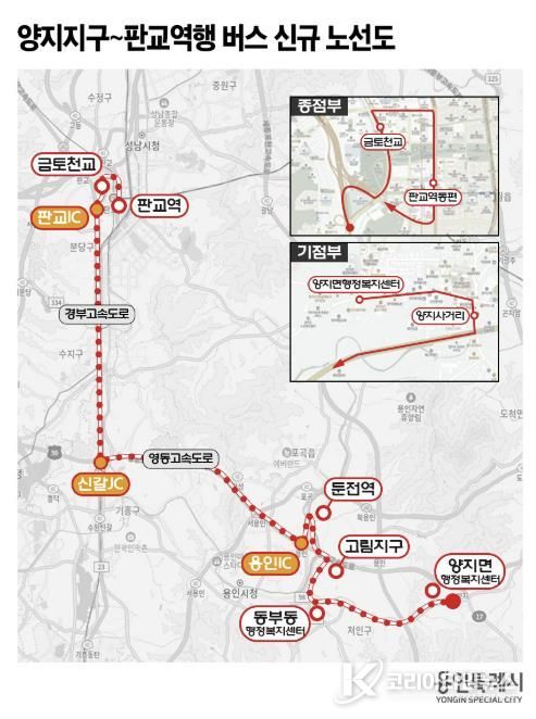 코리아타임뉴스 사회팀 | 용인 양지지구를 출발해 고림동과 둔전역을 거쳐 성남 판교역까지 운행하는 버스 노선이 확정됐다.
