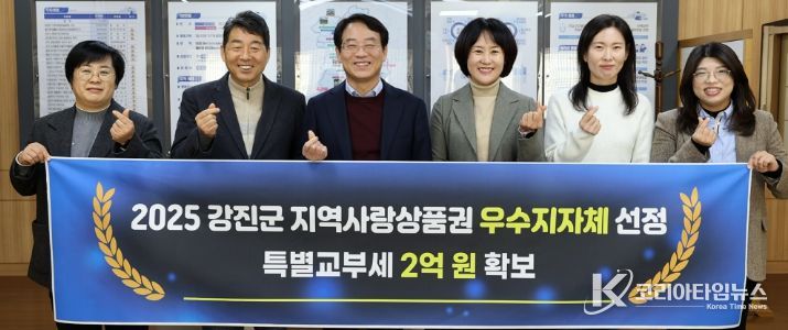 코리아타임뉴스 노승선 기자 | 강진군이 행정안전부 주관 ‘2025년 지역사랑상품권 발행 우수지자체’로 선정돼 특별교부세 2억 원을 확보했다.