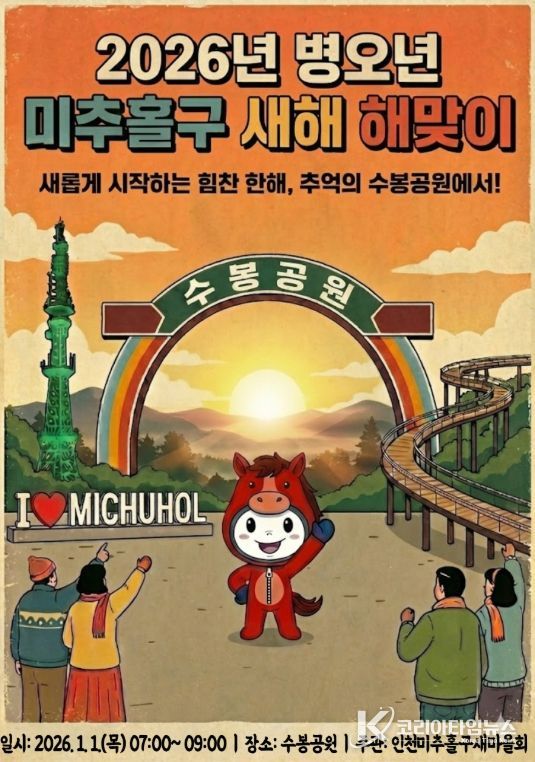 코리아타임뉴스 이아름 기자 | 인천 미추홀구새마을회는 오는 2026년 1월 1일 오전 7시부터 9시까지 수봉공원에서 ‘2026 병오년(丙午年) 새해 해맞이 행사’를 개최한다.