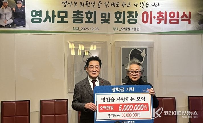 코리아타임뉴스 노승선 기자 | 영천시는 지난 28일 영사모(영천을 사랑하는 모임)가 500만원, 29일에는 신녕농업협동조합 500만원, 신녕면 이장협의회 102만원의 장학금을 영천시장학회에 기탁했다고 밝혔다.