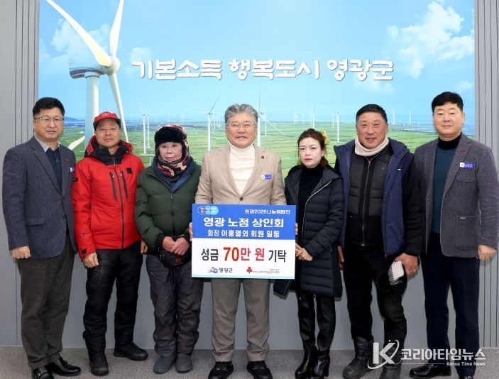 코리아타임뉴스 노승선 기자 | 영광군은 영광노점상인회에서 12월 26일 어려운 이웃들을 위해 성금 70만 원을 기탁했다고 밝혔다.